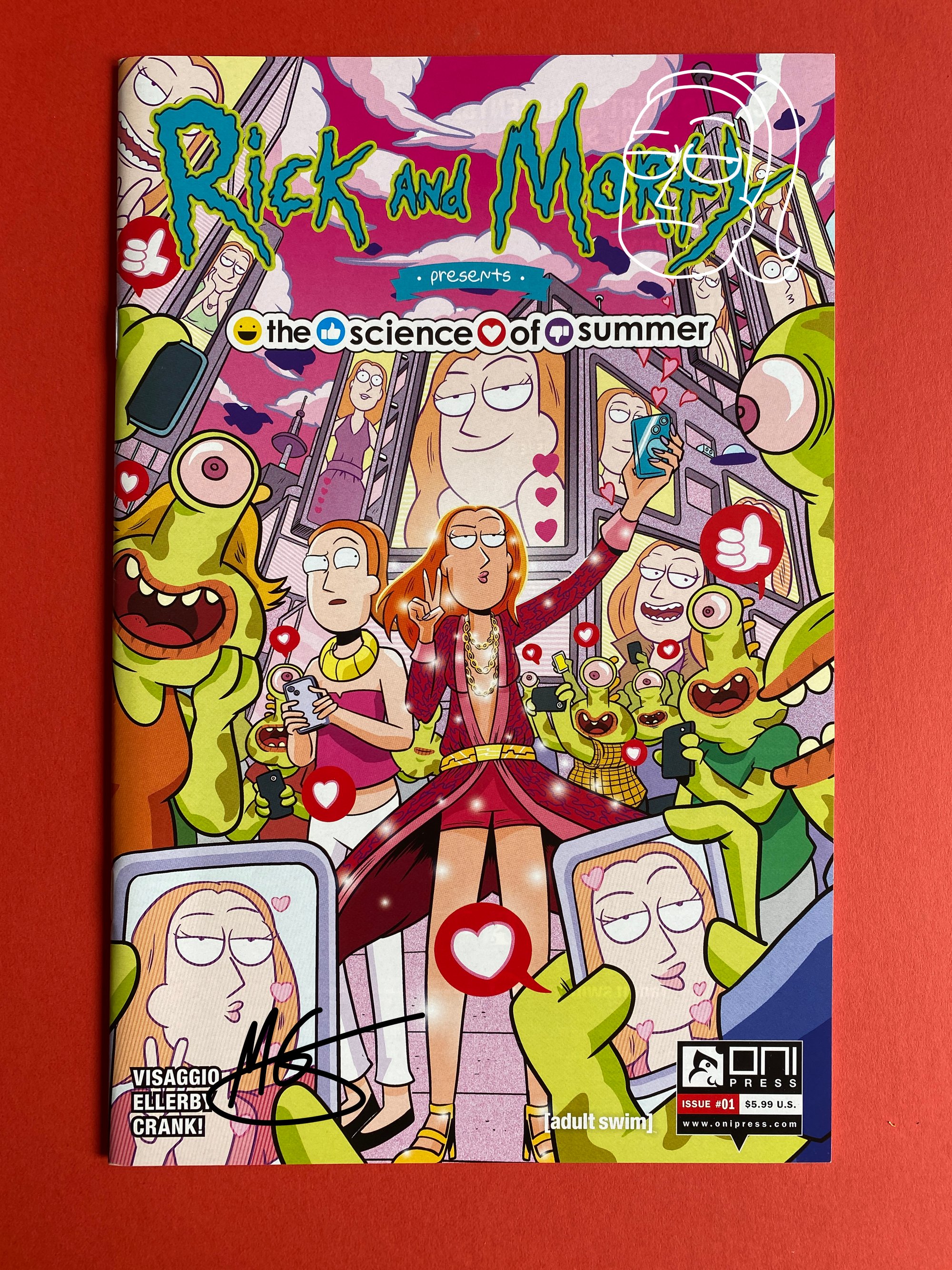 At last, it’s Morty’s sister’s time to shine in an all-new, 40-page journey to the edge of time and space from Eisner Award-nominated writer Magdalene Visaggio (Eternity Girl) and Rick and Morty mega-talent Marc Ellerby (Doctor Who)!