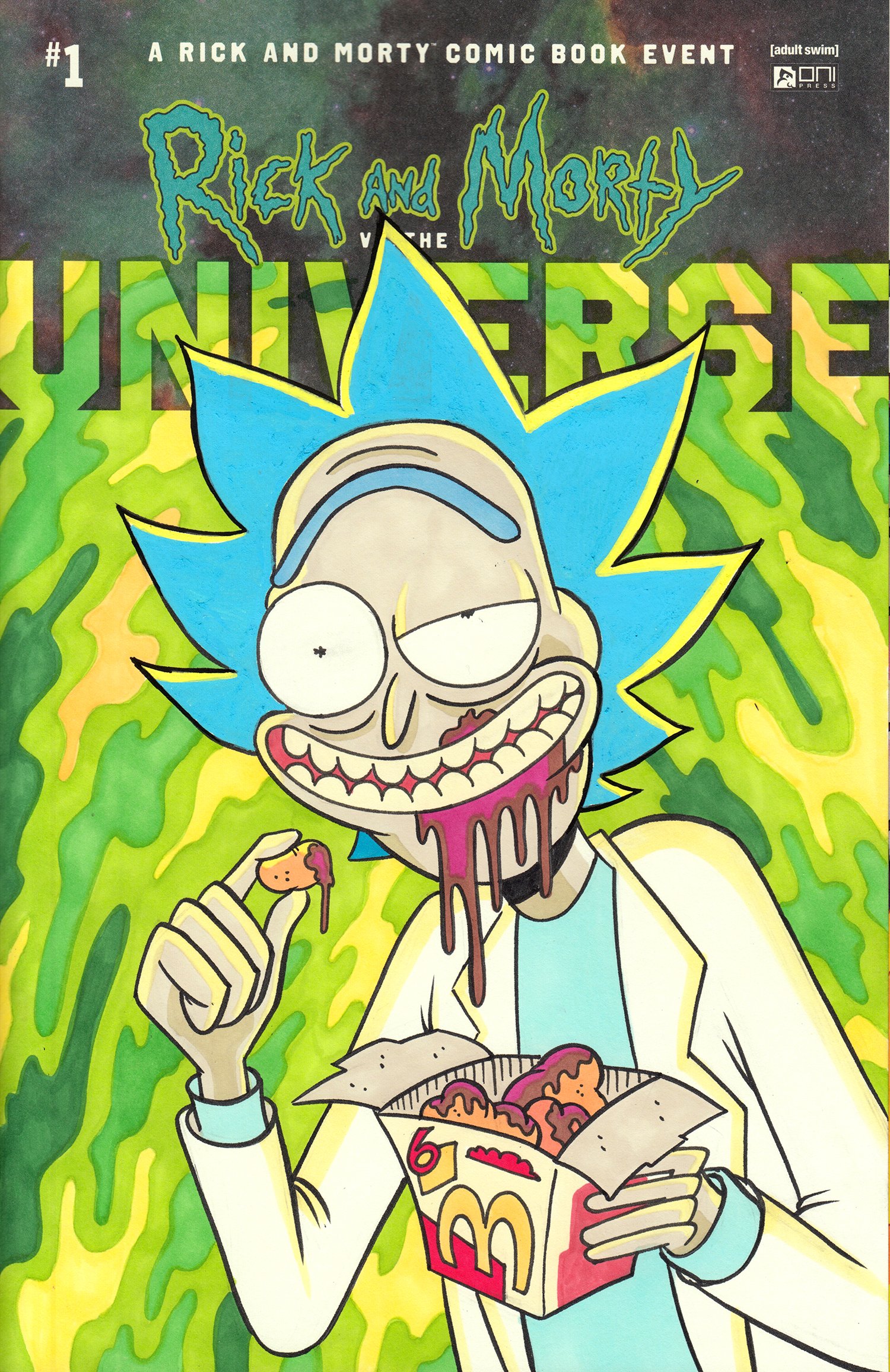 Original art on a Rick and Morty vs the Universe #1 Blank Cover.